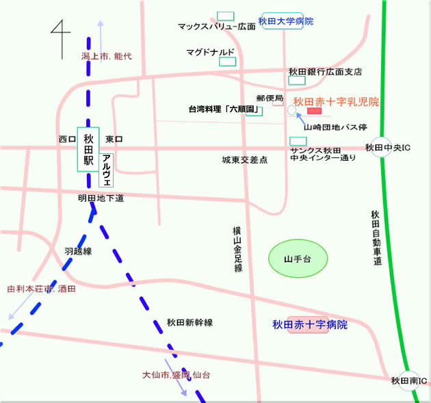 秋田駅東口バスターミナルから大学病院行きに乗車し、山崎団地下車