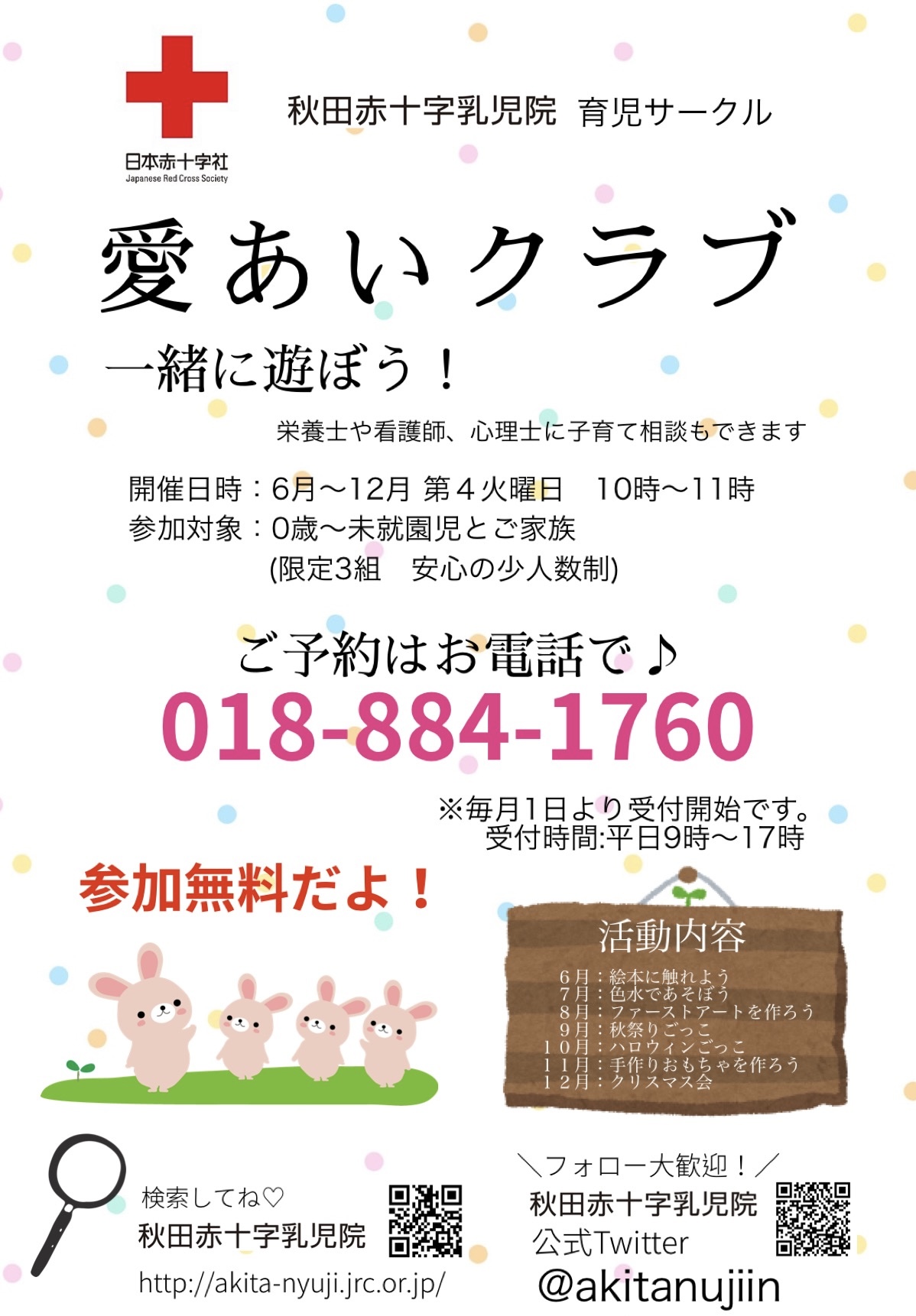 育児サークル『愛あいクラブ』の年間スケジュールを発表します! 詳しくは、ポスター(372KB)をご覧ください。 ※院内の状況により、やむを得ず開催を中止する可能性があります。ご了承ください。 参加者は、健康チェックシートをご記入いただき、当日持参してください。 健康チェックシートはこちらから(208KB)どうぞ!