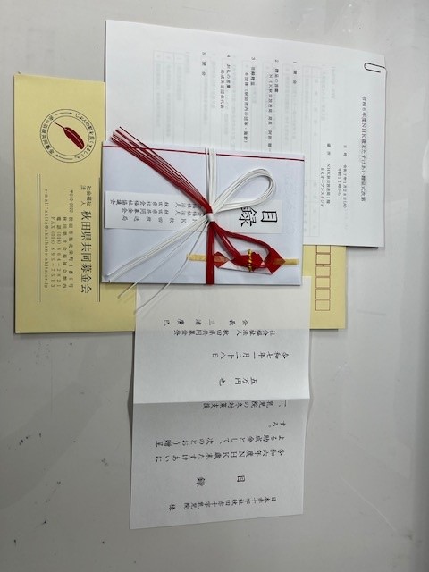 秋田市大町の協働大町ビル 代表取締役 浅利 久樹様より、今月も子どもたちへ寄付金をいただきました。毎月ありがとうございます。