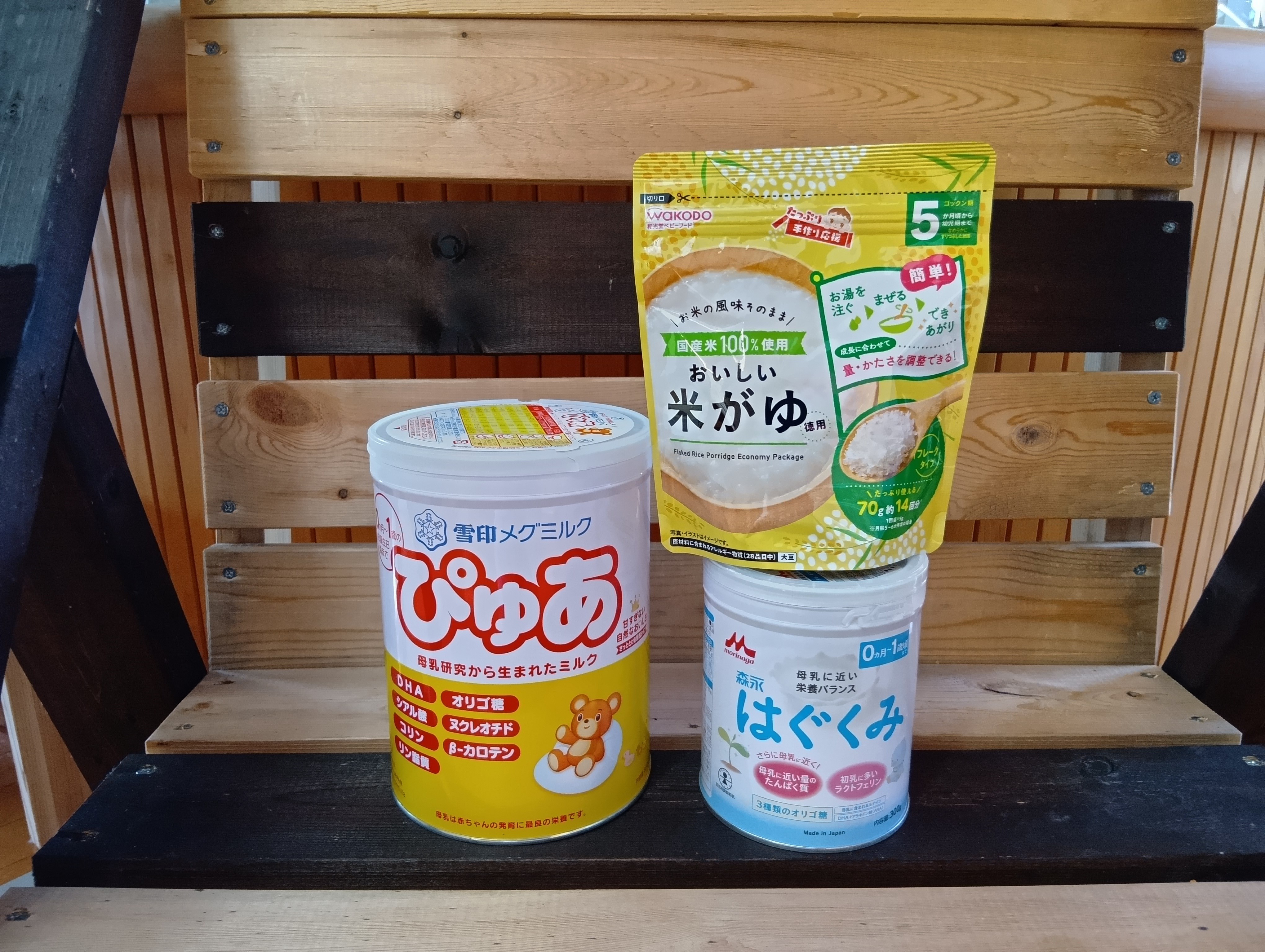 秋田市にお住まいの匿名希望の方からミルク2缶とフリーズドライの米がゆをいただきました。