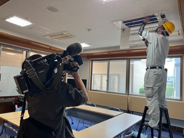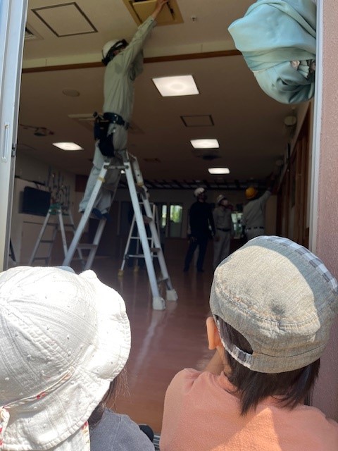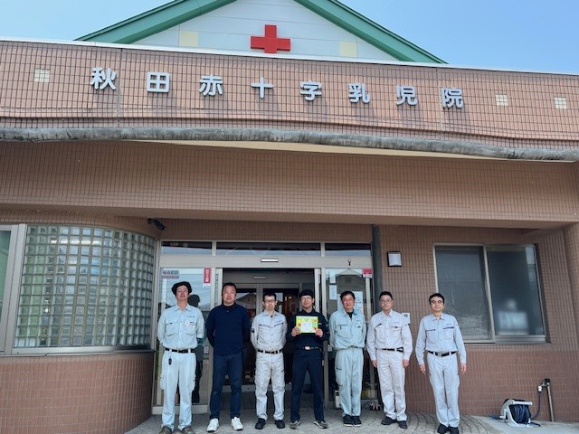 6月7日(土) 秋田電気組合青年部の皆様から奉仕活動をしていただきました。 この活動は平成26年から続き今年で11回目となります。 ABS秋田放送様が取材に来てくださいました。 子どもたちも院庭から作業を観察。