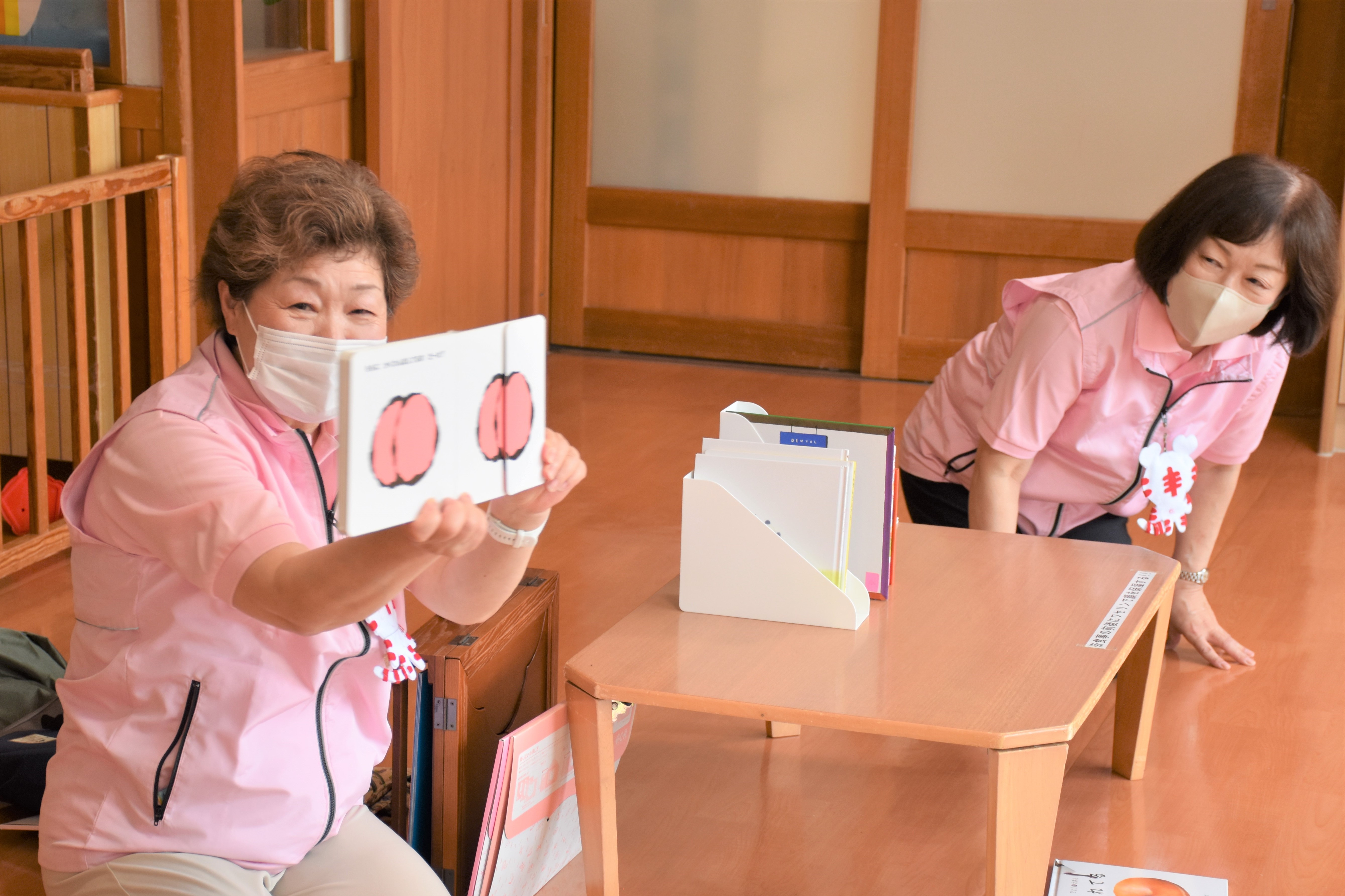 絵本の読み聞かせでは、子どもたちが集中してお話に聞き入っておりました。たくさんの絵本を読んでいただき、子どもたちは大喜びでした!