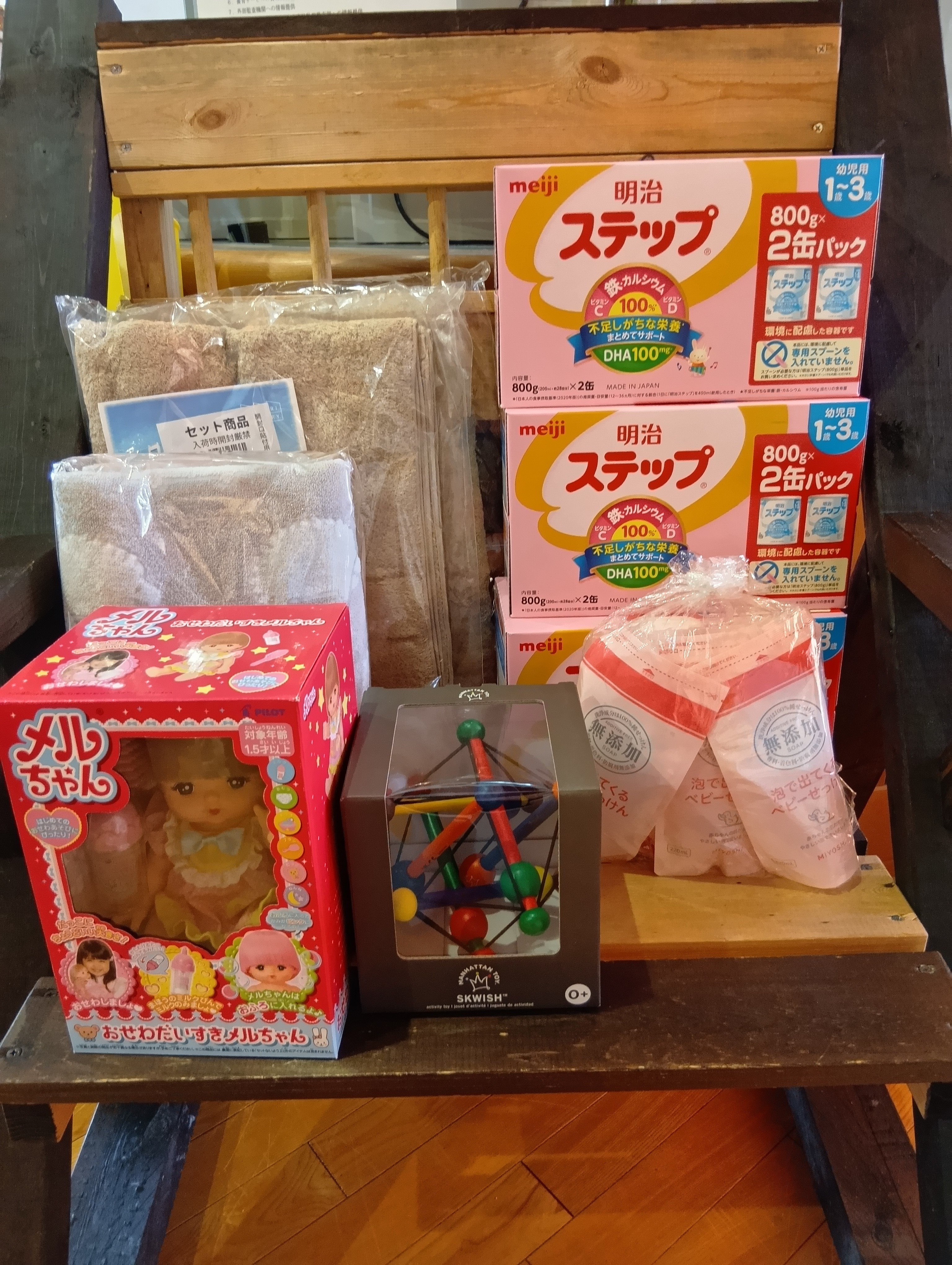米崎様より粉ミルクやおもちゃ等たくさんご寄付をいただきました。