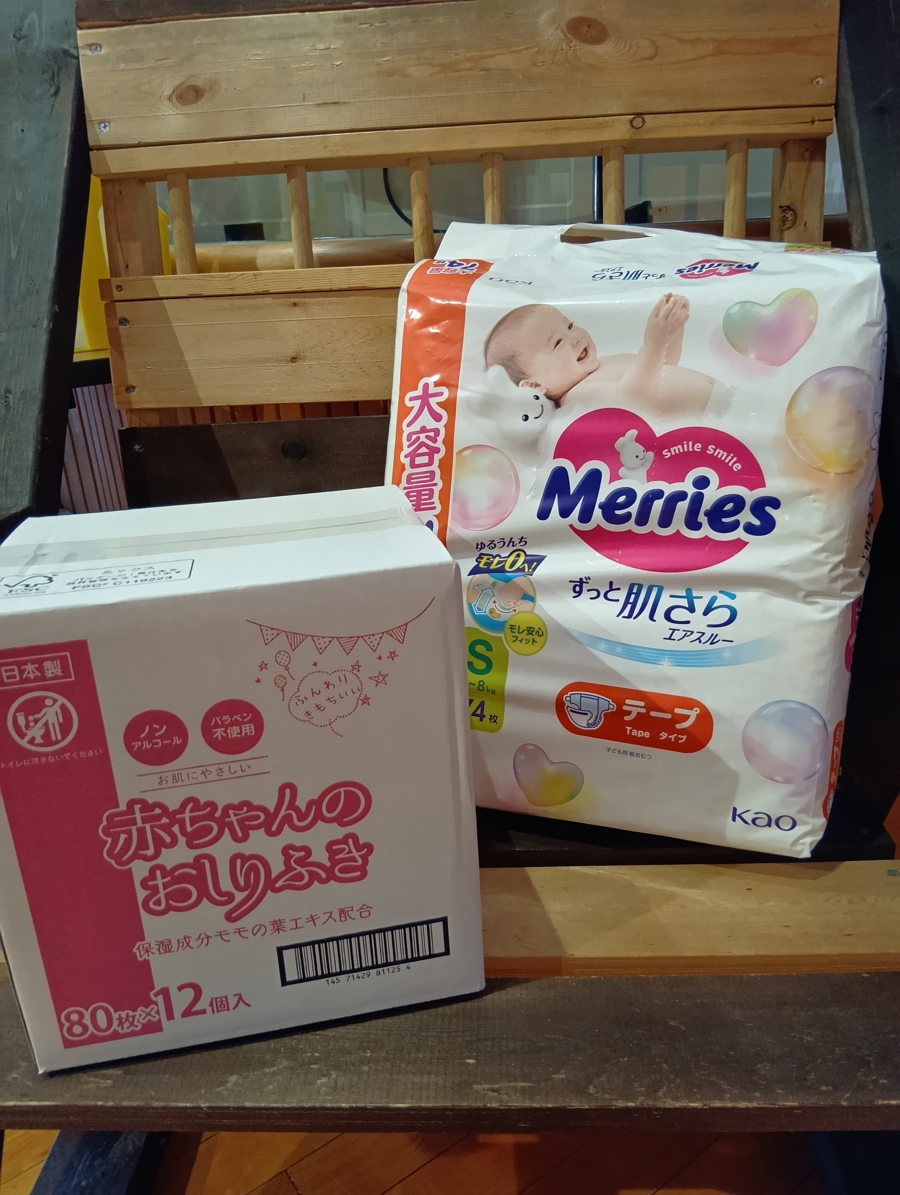 ●匿名の方からおむつとおしりふきをご寄付いただきました。