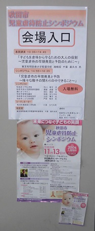 11月14日(金)秋田魁新報に掲載されていました、11月13日(木)秋田市拠点センターアルヴェ 2階多目的ホールにて、『秋田市 児童虐待防止 シンポジウム』が、開催されました。当院の看護師長がシンポジストとして講演いたしました。