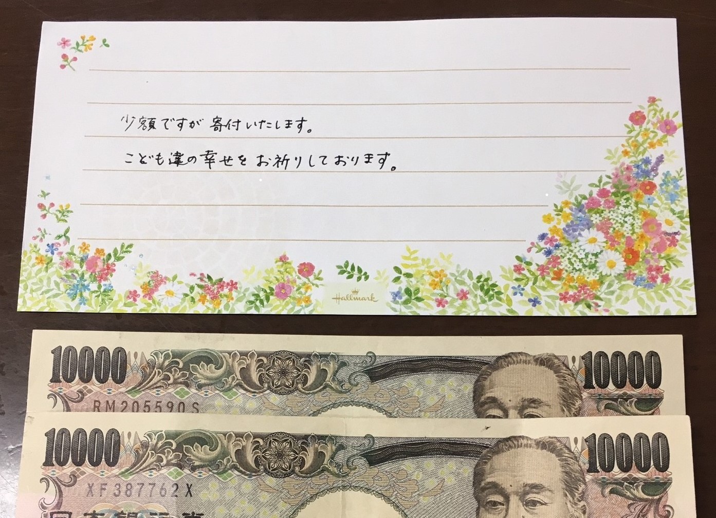 渡部さまと佐々木さまからは、以前もご寄付をしていただいております。