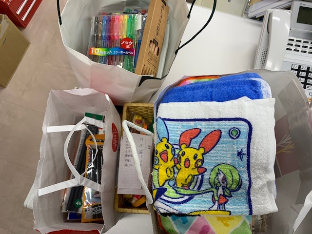 〇以前にもタオル等ご寄付いただいております秋田市の大島様よりハンドタオルや文房具をたくさんいただきました。