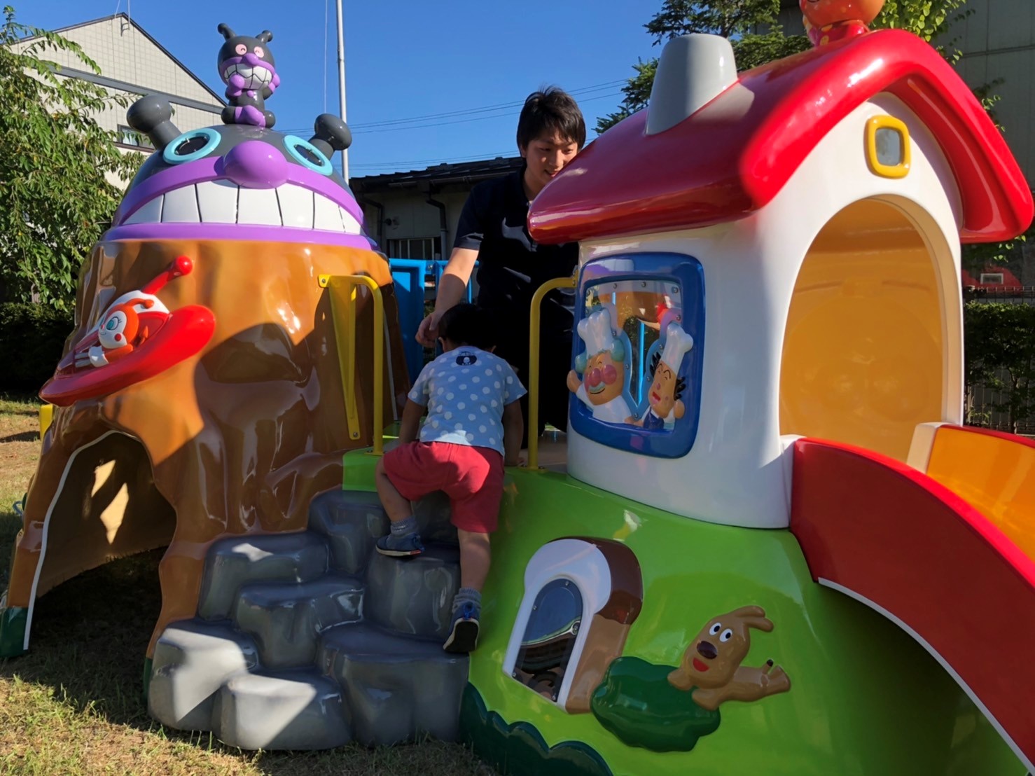 子どもたちは、大好きなアンパンマンのお城とベンチに大興奮です!