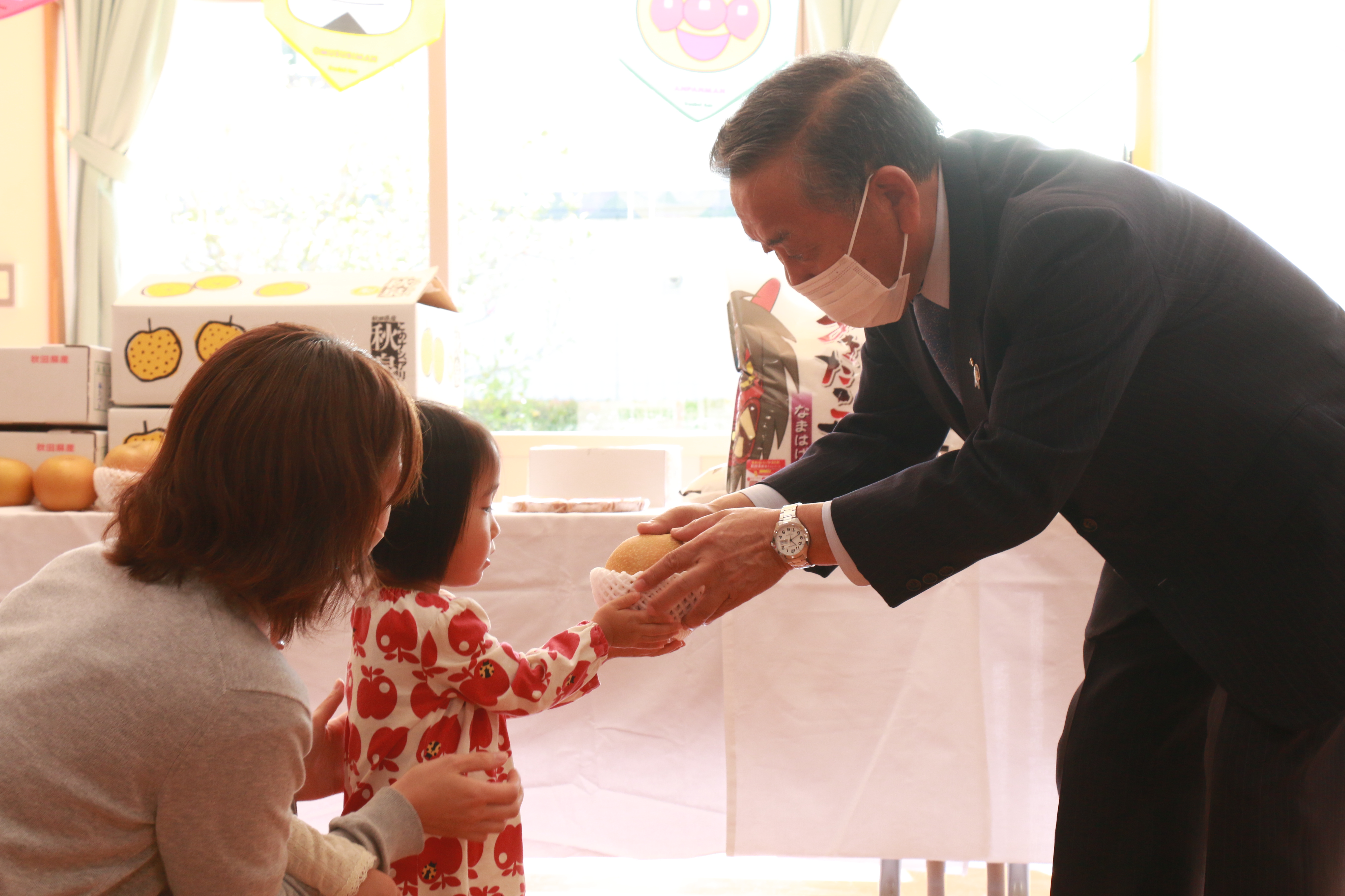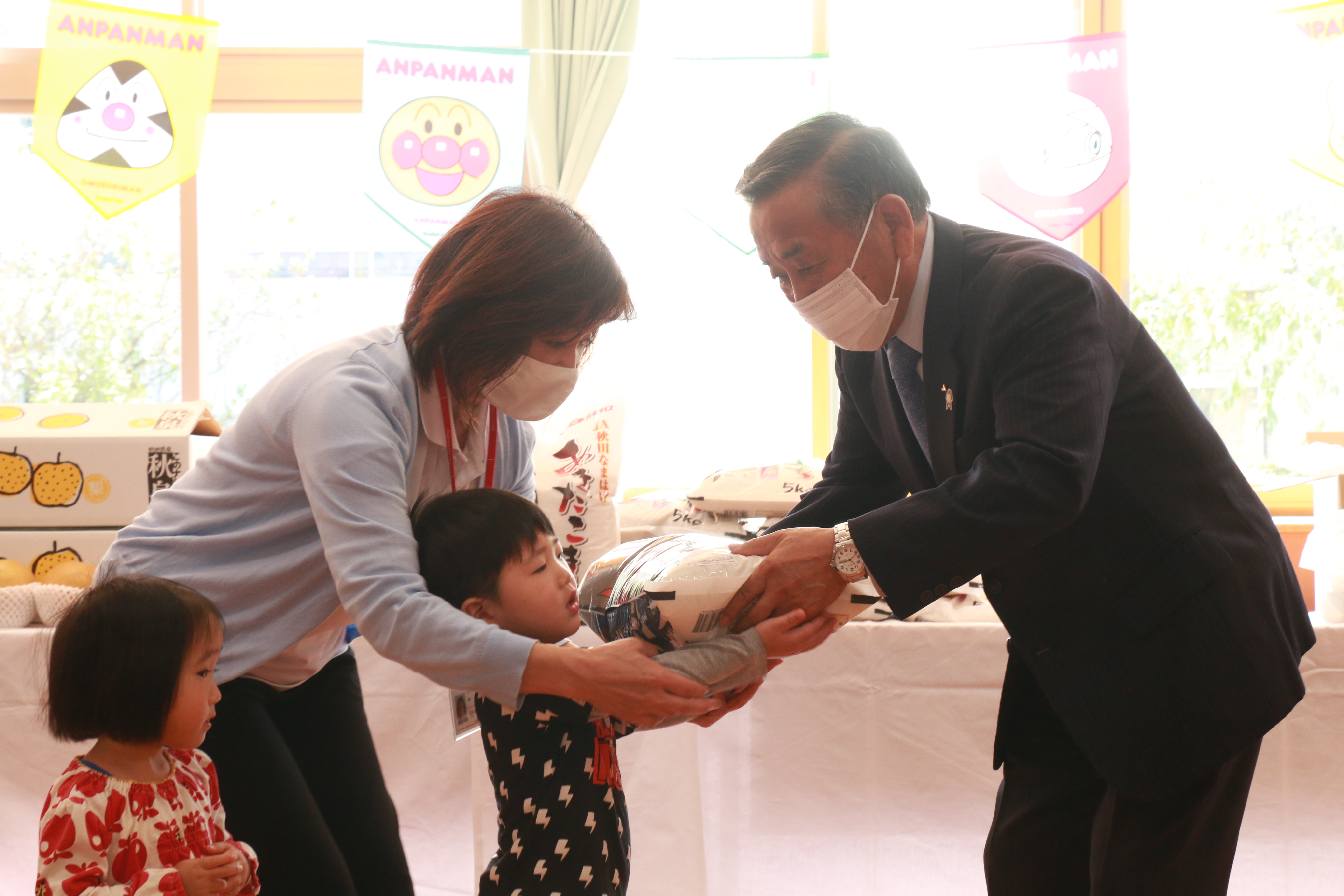 〇JA秋田なまはげ様より今年も子どもたちへおいしい新米と梨・クッキーをいただきました。