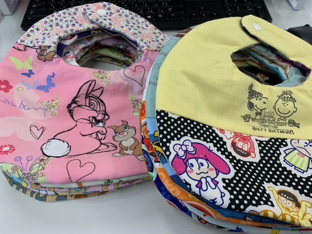 にかほ市にお住いの佐々木様より子どもたちへ手作りスタイを頂きました。