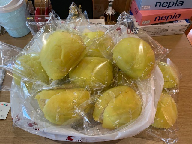 AKT秋田テレビの神成会長より子どもたちへおいしいパンをたくさんプレゼントいただきました。