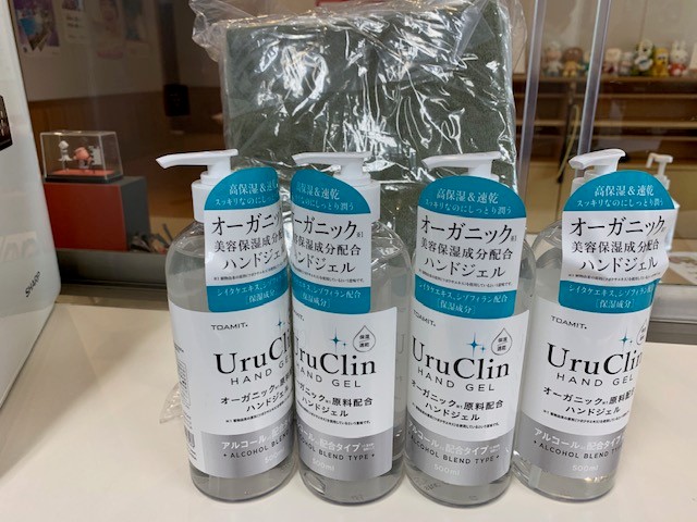 〇秋田市の美容サロン9~rine菊地様よりタオルと消毒液をご寄付いただきました。