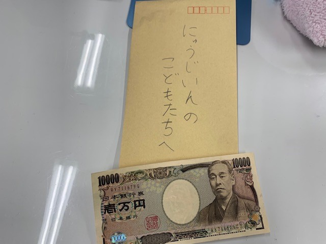 〇あしのみじかいおにいさんから子どもへ寄付金をいただきました。