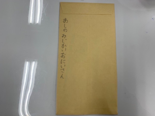 とってもしっかりと字で、封筒に書いてくれたお気持ち感動しました。ありがたく子どもたちへ使わせていただきます。