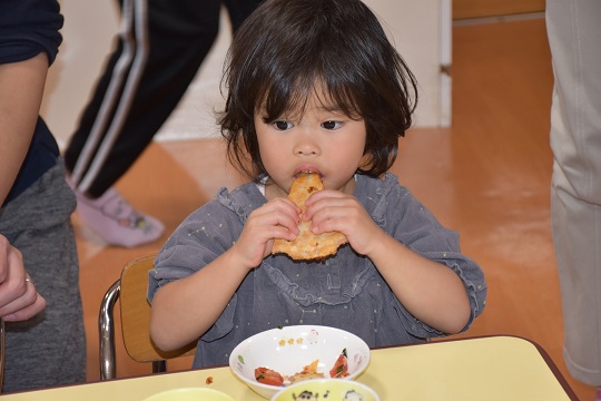 今回は2回目で、先日は初見のものに抵抗があってあまり食べれなかった子も、少し慣れて食べれるようになったり、前回で味をしめて、口いっぱいにほおばって食べる子もいたり………職員も一緒に頂きました!