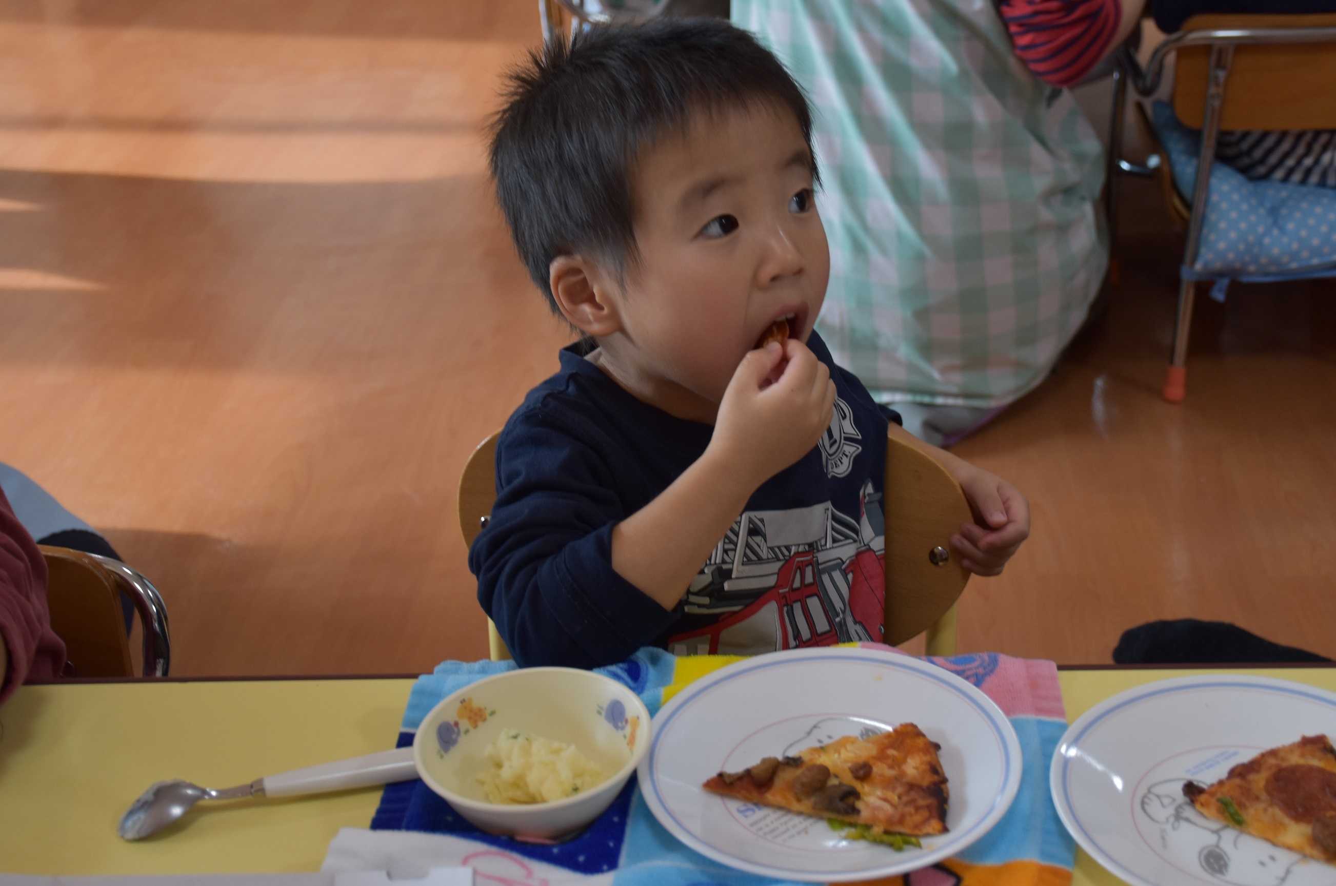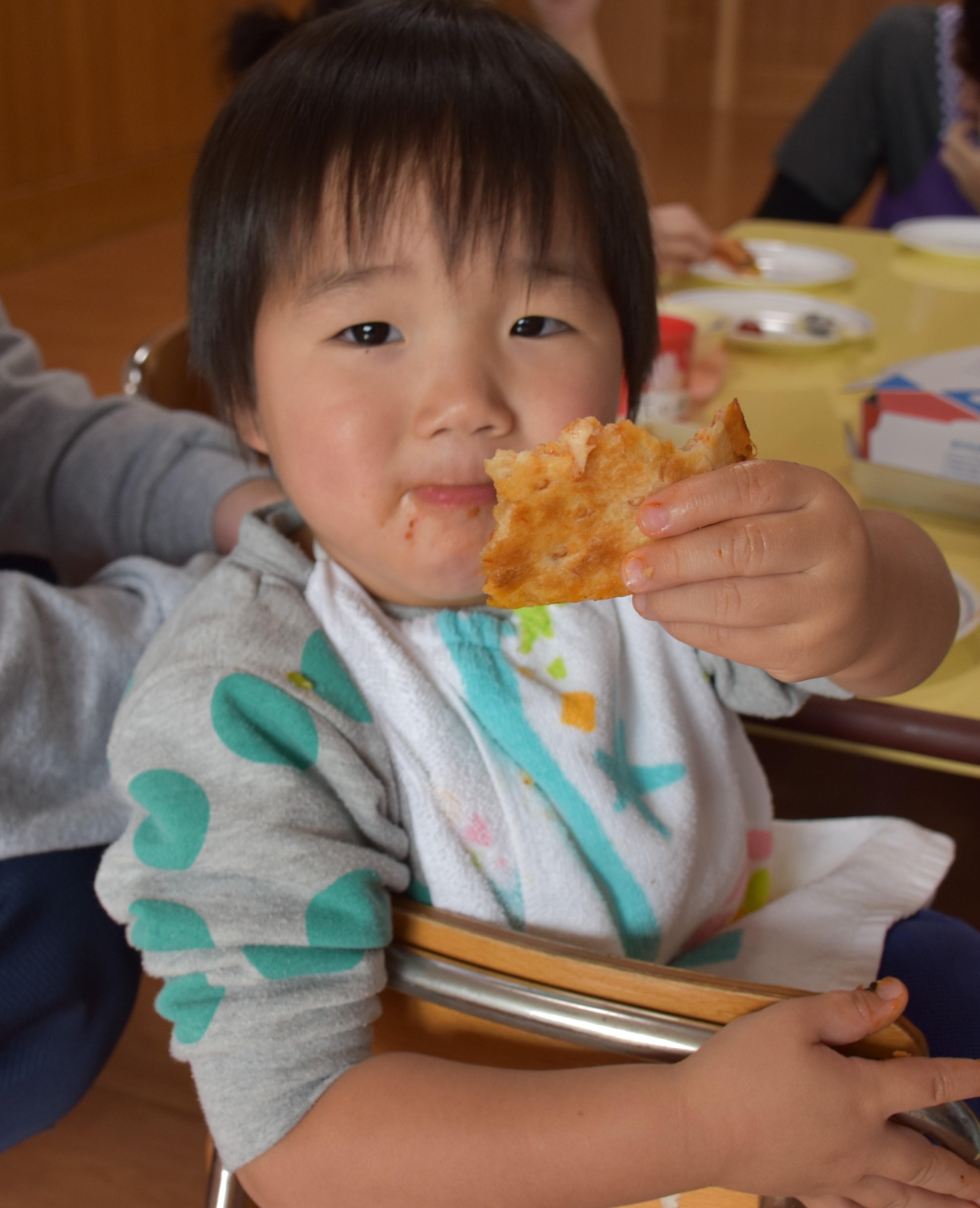 クリスマス気分で、楽しくみんなでピザを食べることができました!子どもたちの笑顔をたくさん見ることができて、本当に良かったです。