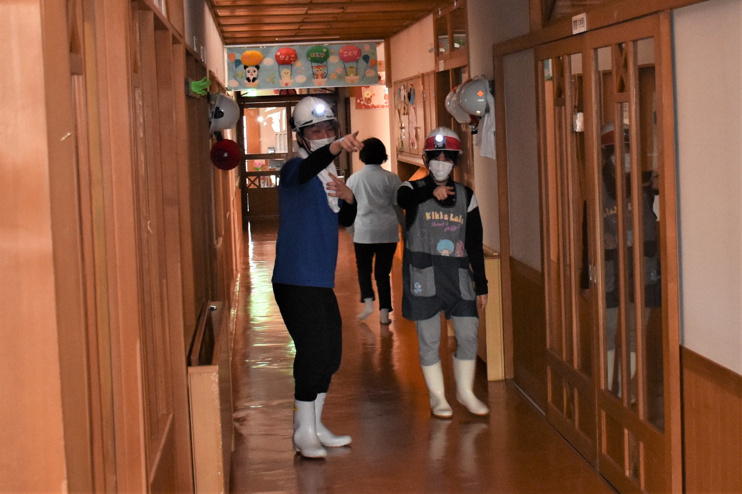 <夜勤者と子どもたちの避難完了>