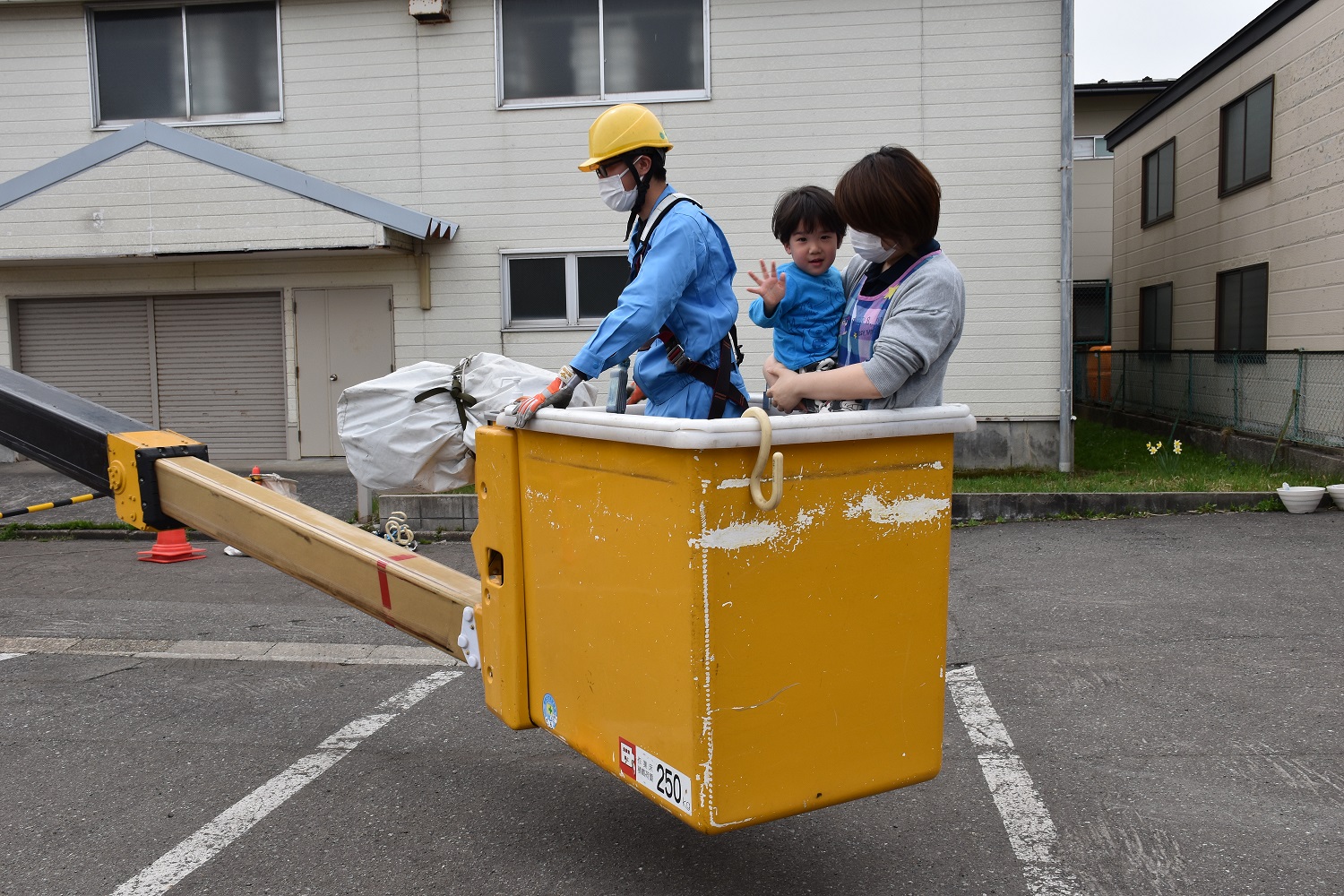 また、ご厚意により、高所作業車にも来ていただき、子ども達をバゲットに乗せていただきました!