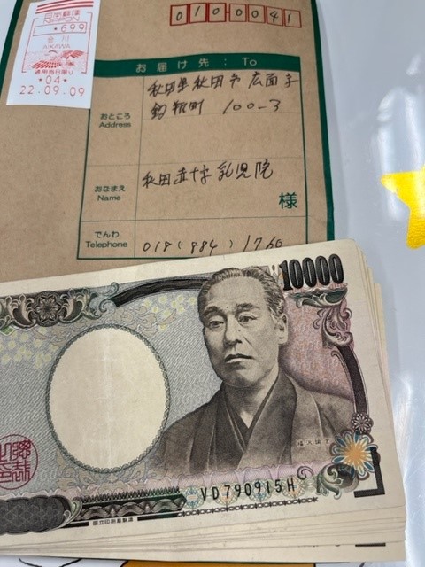 北秋田市にお住いの匿名希望の方から、当院の子どもたちへご寄付をいただきました。