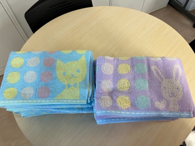今年も、太平地区保健推進委員の皆様から、子どもたちへかわいいバスタオルをたくさんいただきました。