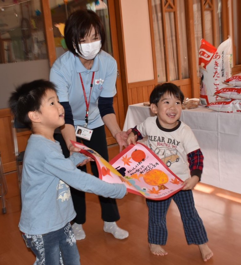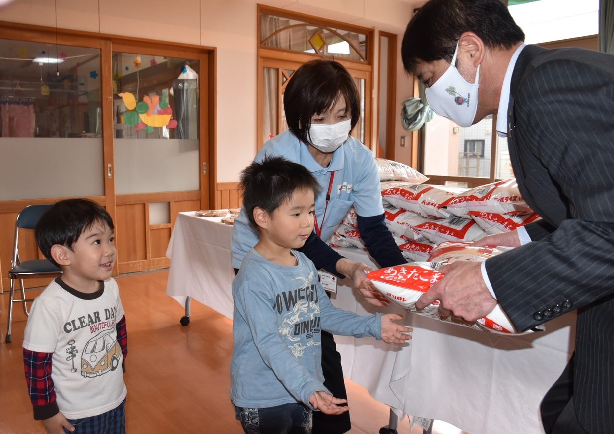 今年も、JA秋田なまはげ様より、子どもたちに新米200kgとりんご20Kg、そして、手作りクッキーをたくさんいただきました!