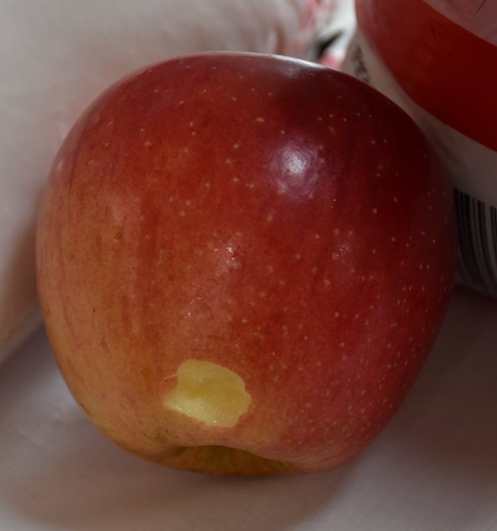 おいしそうなりんごをもらって、我慢できなかったんですね…( *´艸`)。