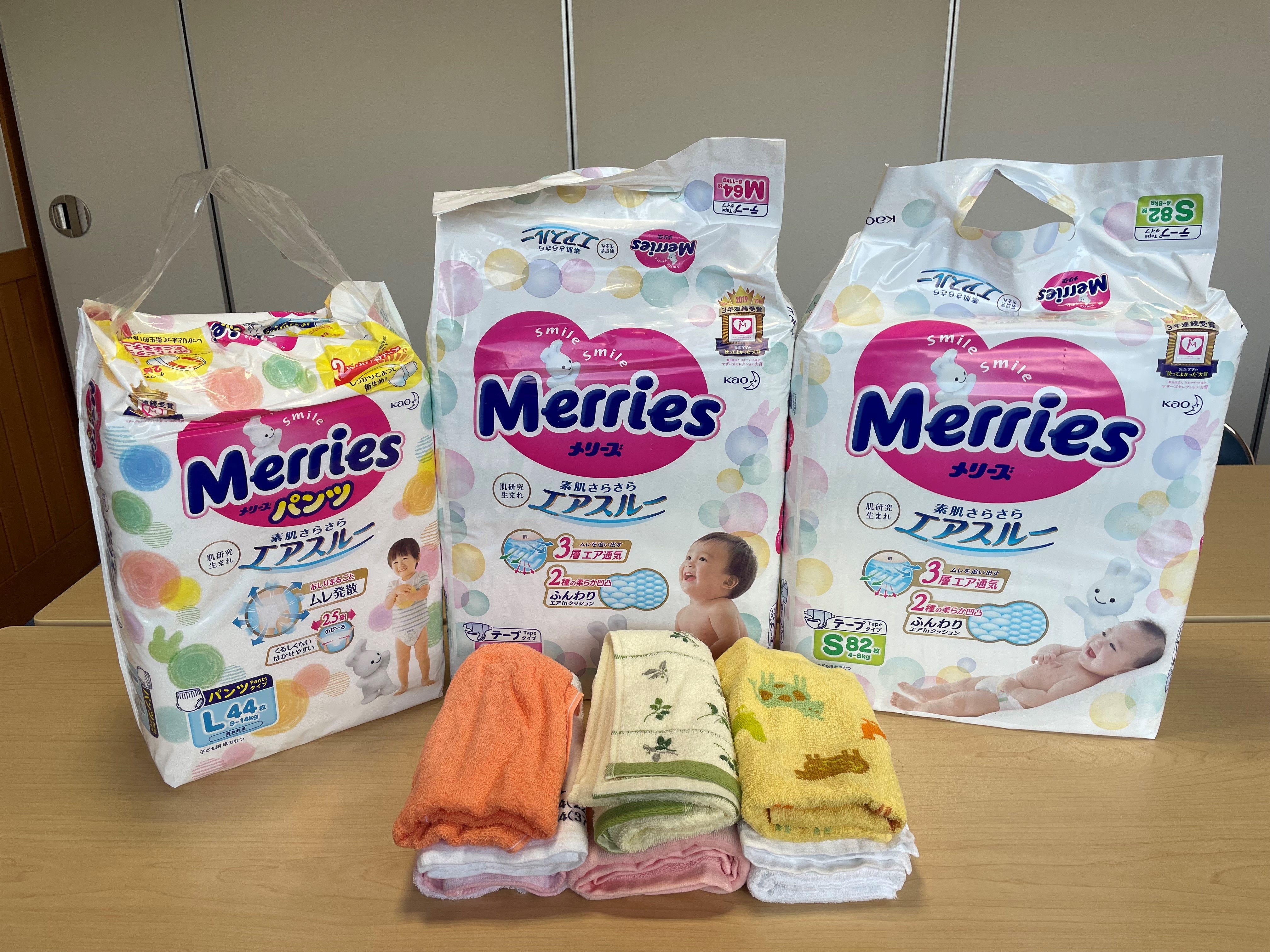 にかほ市の「パン教室 kukka」様から、子どもたちへ紙オムツとタオルをご寄付いただきました。