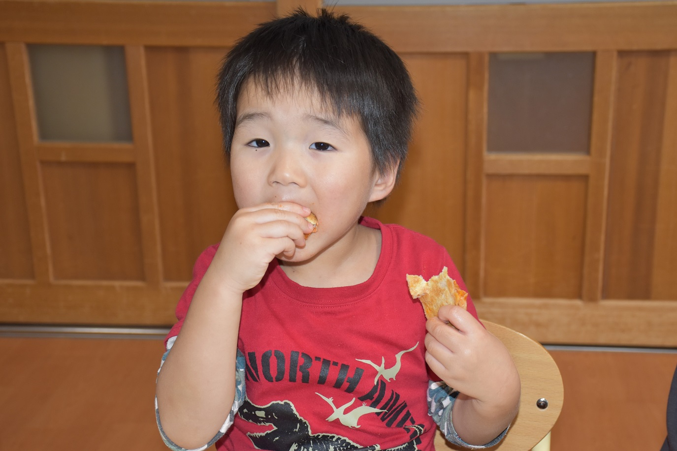 おかわりする子もおり、みんなピザが大好きのようです。