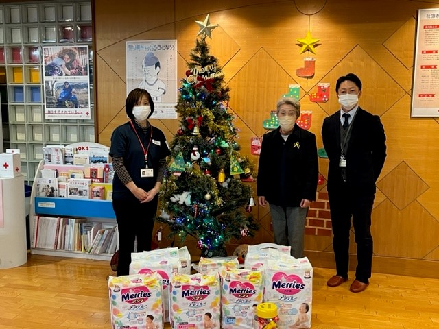 仙北市赤十字奉仕団の皆様から、たくさんのオムツとおもちゃをご寄付いただきました。同奉仕団からは毎年ご寄付をいただいております。