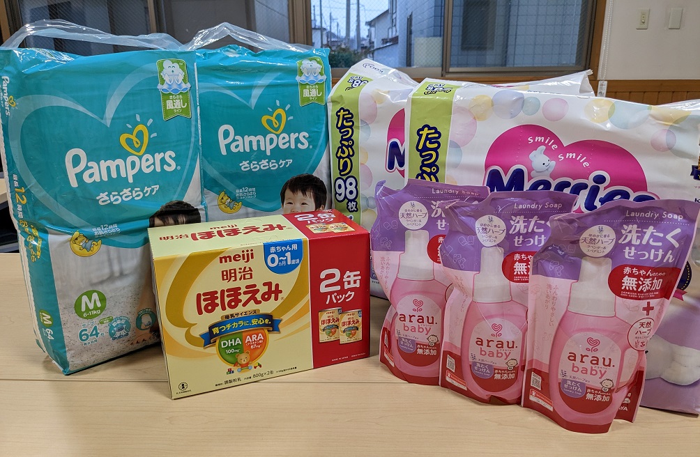 米崎様より、オムツ、粉ミルク、洗たくせっけんをご寄付いただきました。