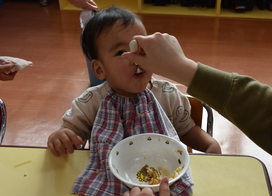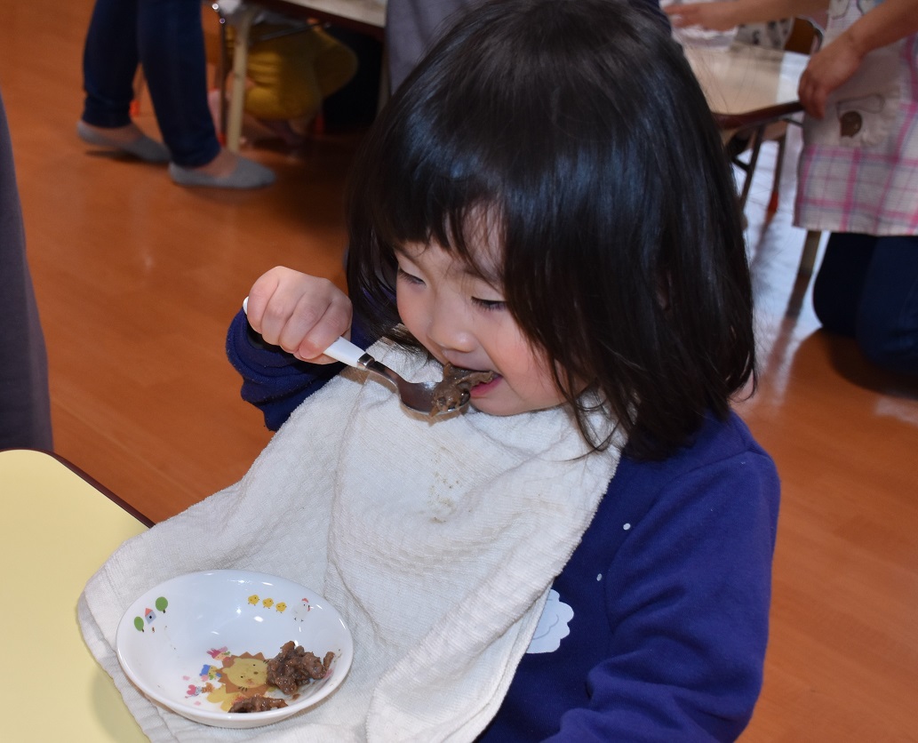 上手にお肉をかんで、笑顔で楽しく食べました(^_^)