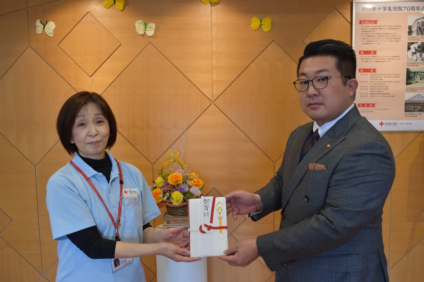 公益社団法人生命保険ファイナンシャルアドバイザー協会秋田県協会様より、善意寄付金をいただきました。