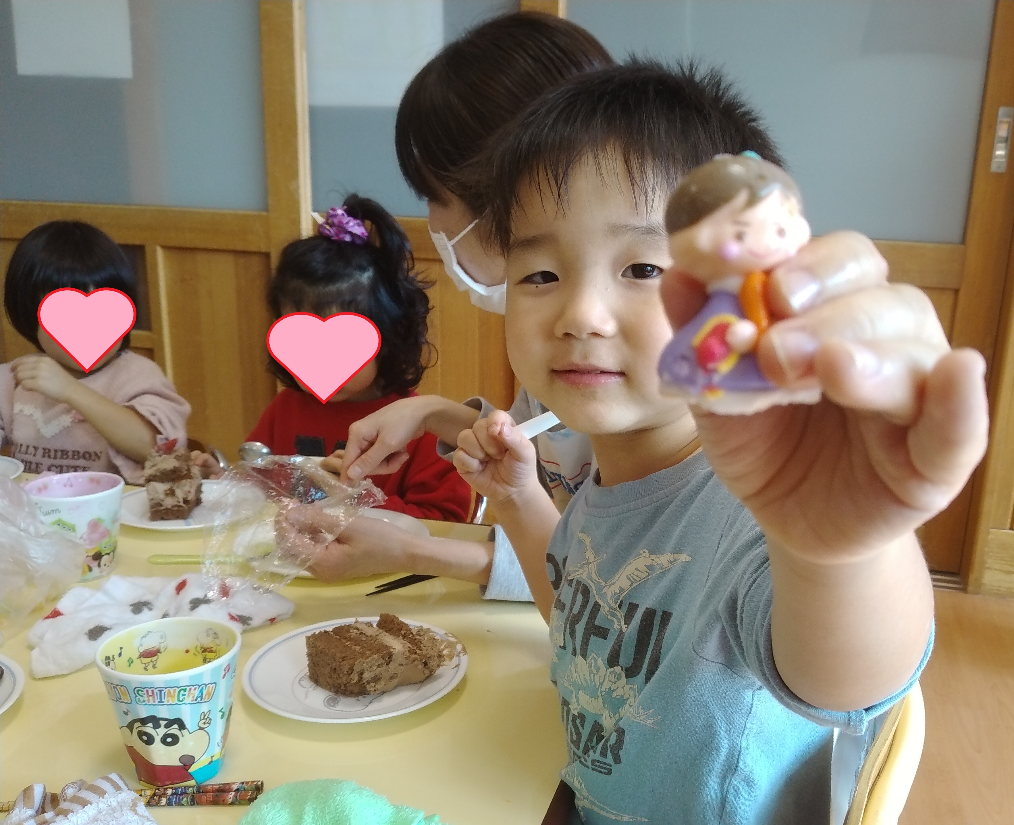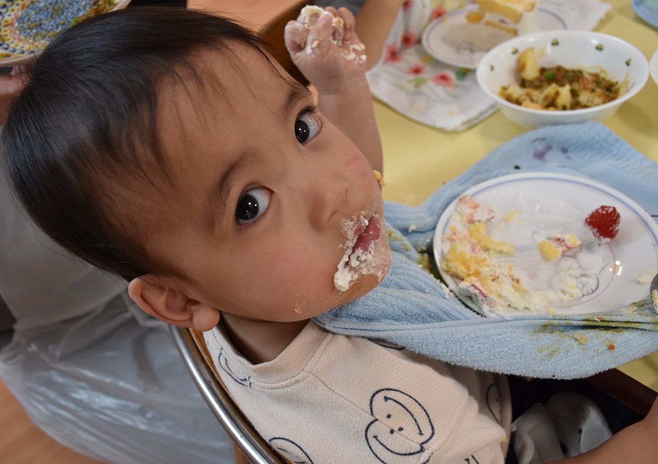 子どもたちは、配られたケーキをペロっと食べて、もっとちょうだい~とケーキを指さし、何度もおかわりをもらって食べてました。