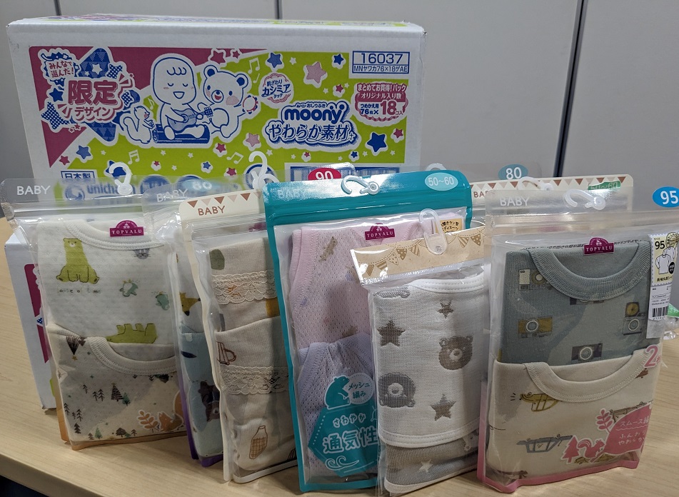 秋田市にお住まいの杉澤様より、おしりふきとたくさんのかわいい肌着をいただきました。