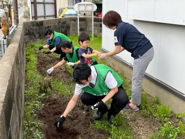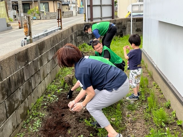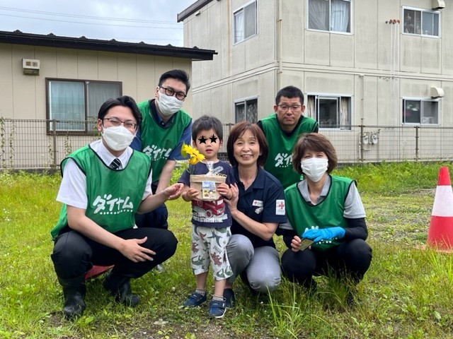 6月28日(水) 株式会社 ダイナム 様より、はるかのひまわり絆プロジェクト※のひまわりの種を植えて頂きました。 ※阪神淡路大震災の際、被災者の加藤はるかさん自宅跡地に咲いた向日葵を「はるかのひまわり」と名付け、毎年ひまわりの種を全国の自然災害地等に配布し、絆をつなぐ活動。