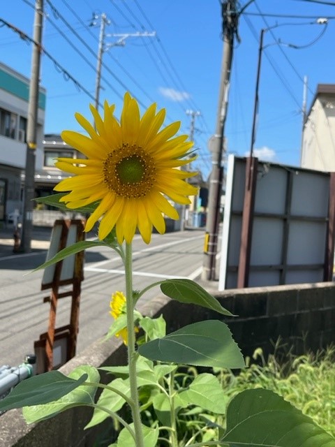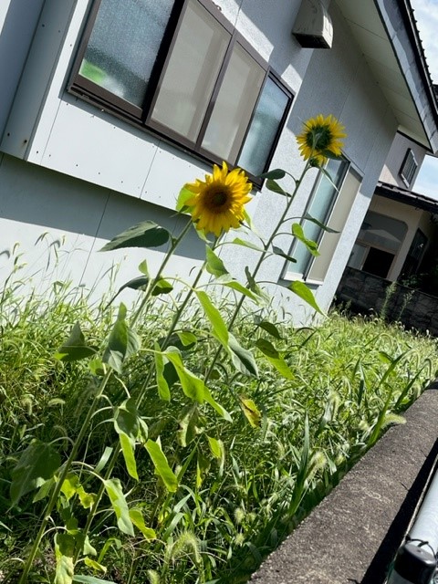 裏の駐車場に植えて頂いたひまわりは、2・3個芽が出て葉っぱまで出ていたのですが…7月の大雨災害の時に水没…残念ながらその後成長せずでした…。