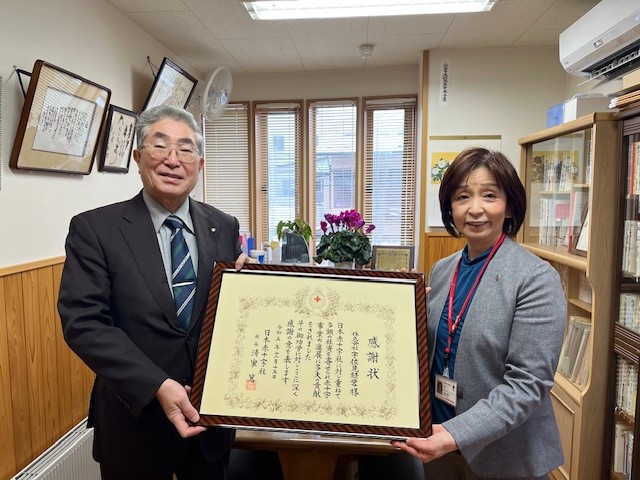 毎年、当院の子どもたちへ寄付金いただいております、宇佐見経営の宇佐見康伸氏へ社長感謝状を贈呈いたしました。